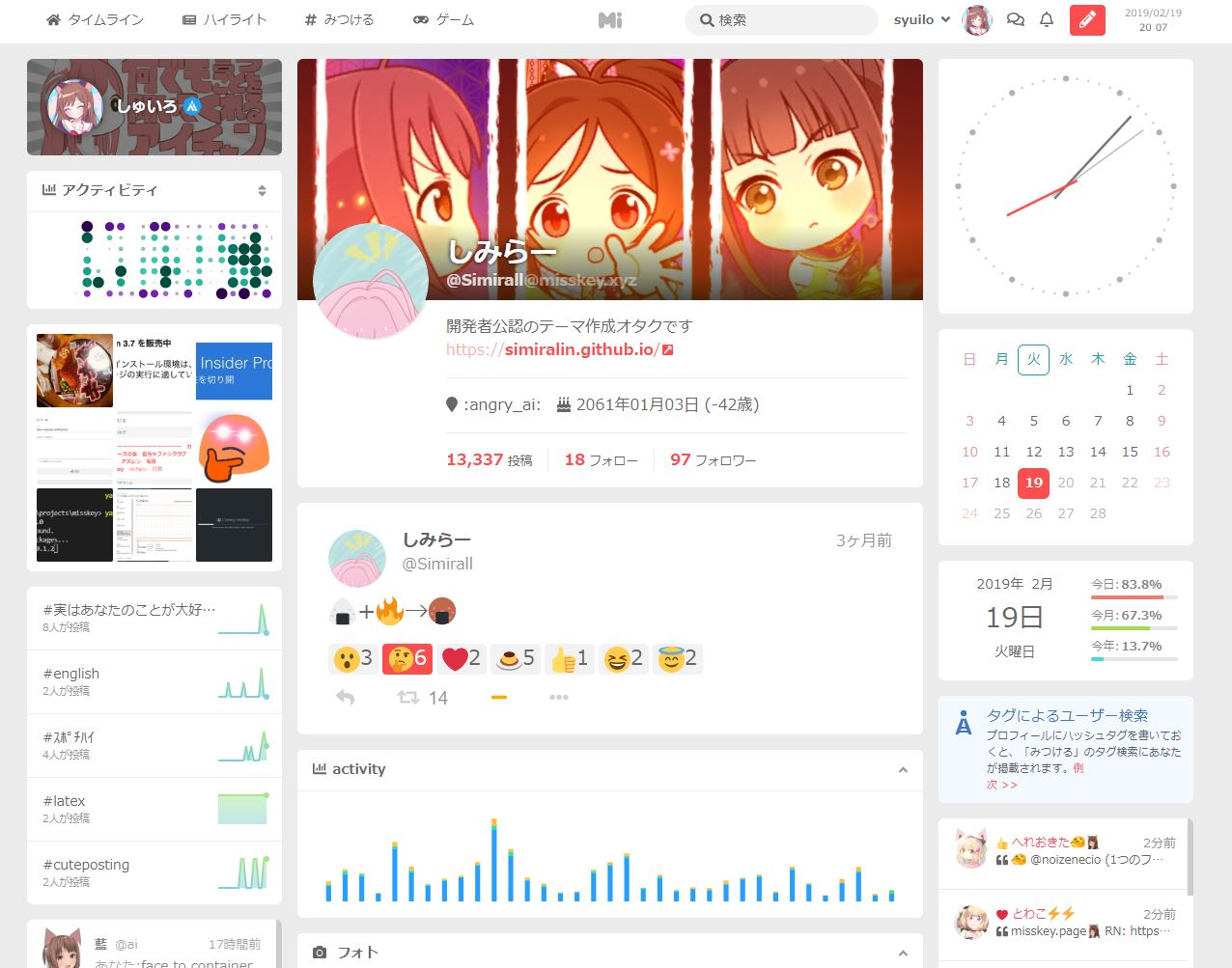 Customize the UI to your own tastes! No UI will work for everyone, so Misskey is completely customizable. Make Misskey *yours* by editing the style, adjusting timeline layouts, and placing widgets.